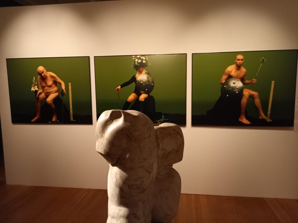 Na analogicznej zasadzie zbudowane są dalsze części wystawy – mamy wizerunki rycerzy, filozofów, polityków i ludzi kultury. Sztuka, która inspiruje się modą również w ten sposób, że czasem odziera swoich modeli z ubioru.